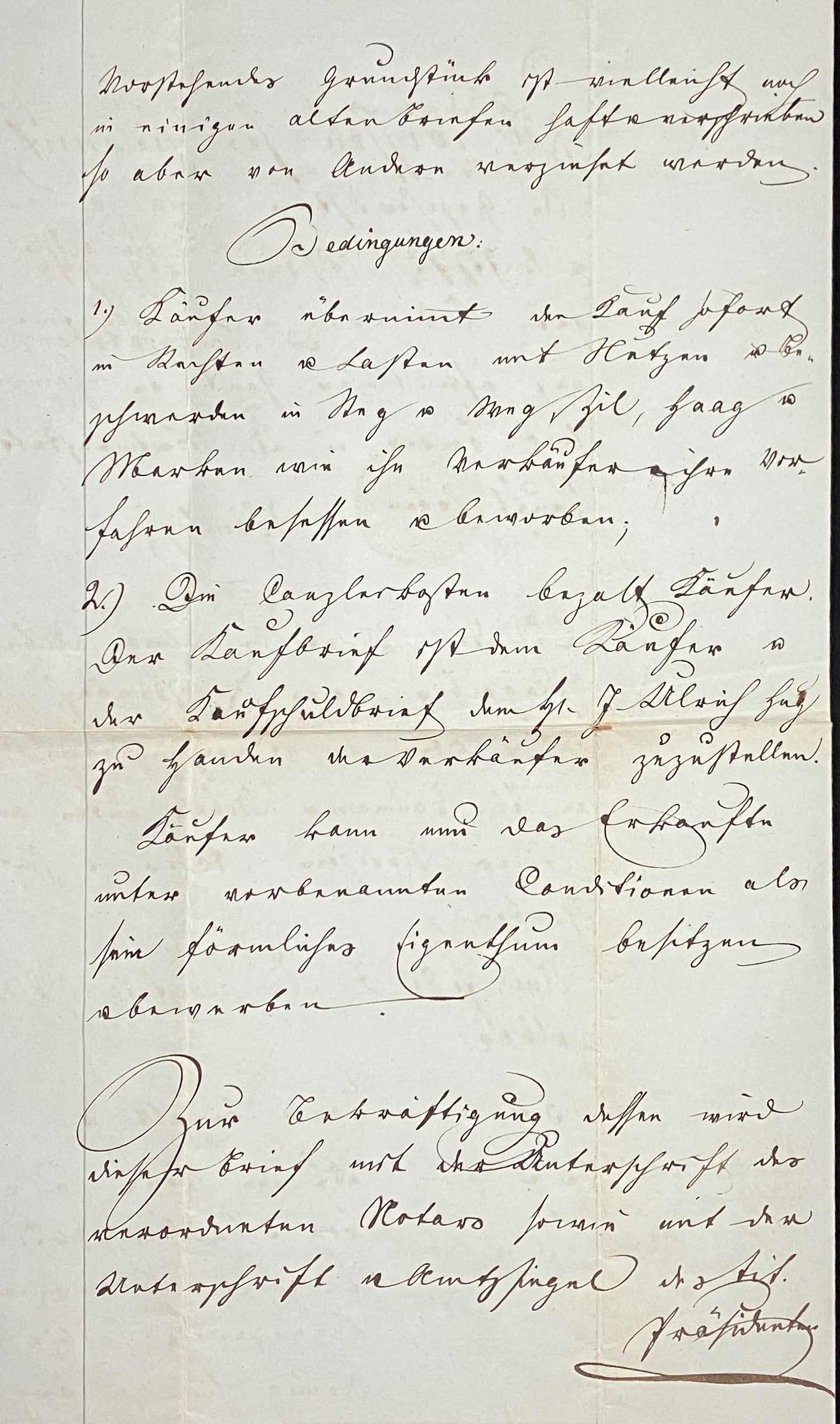 1.) Käufer übernimmt den Kauf sofort in Rechten u Lasten mit Netzen u beschwerden in Steg u. Weg zil, Haag u.