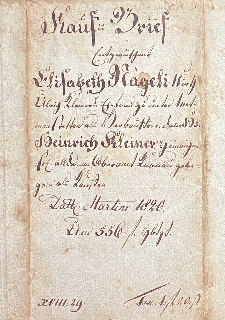 Kauf-Brief Entzwüschent Elisabeth Nägeli Wirth Ulrich Kleiners Ehefrau zu unter Metmanstetten als Verkäußere, dann § 85.