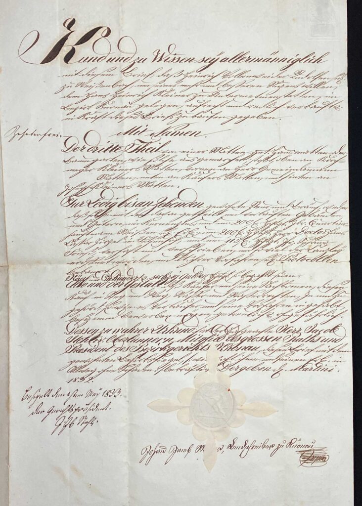 gewohnten Bezirbsiegel, (:wi: „ohl ihme und seinen Erb, in