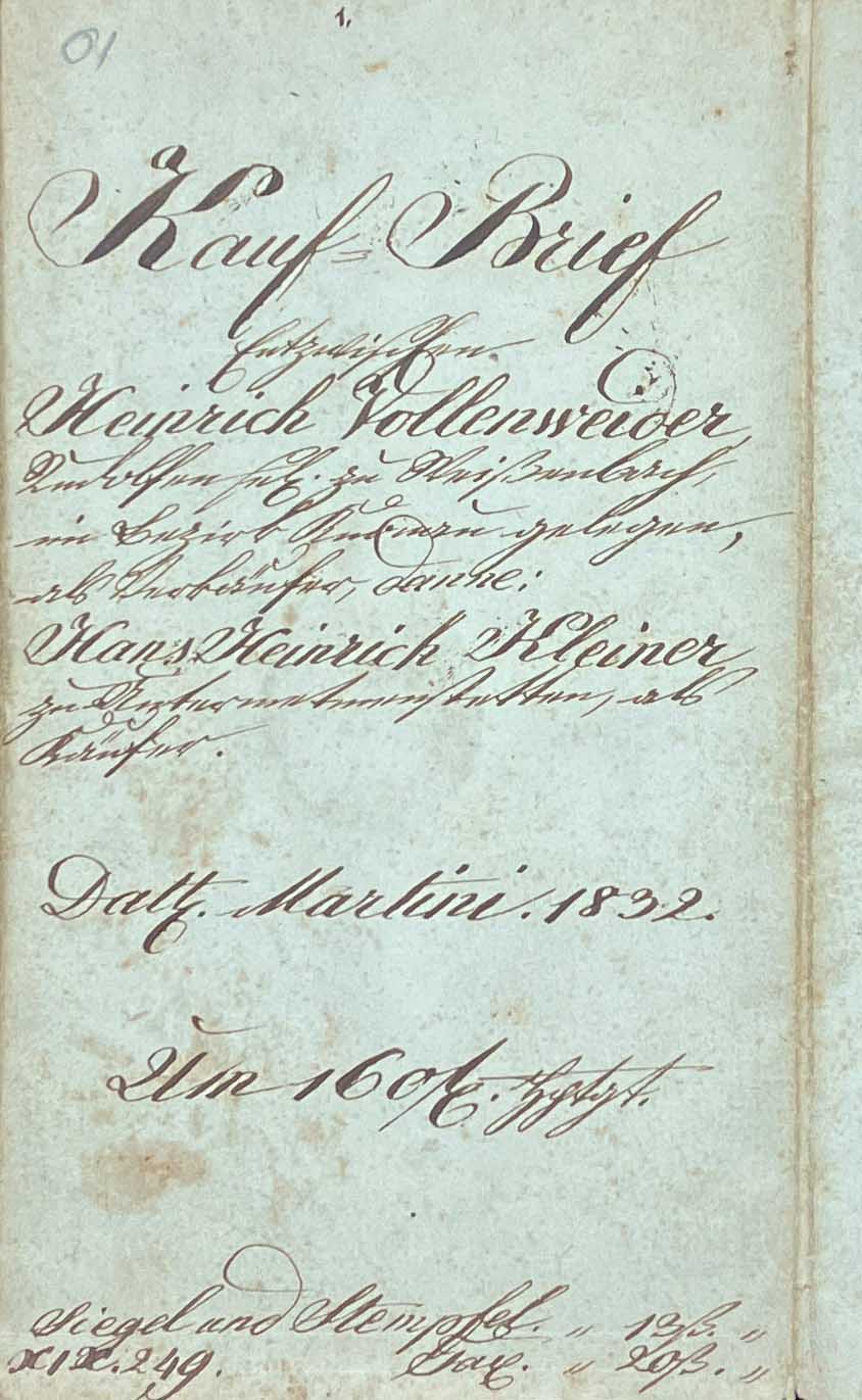 Kaufbrief zwischen Heinrich Vollenweider und Heinrich Kleiner