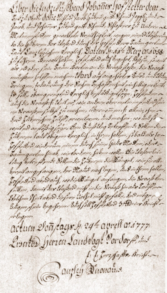 Actum Donnerstags d. 24. April ao. 1777