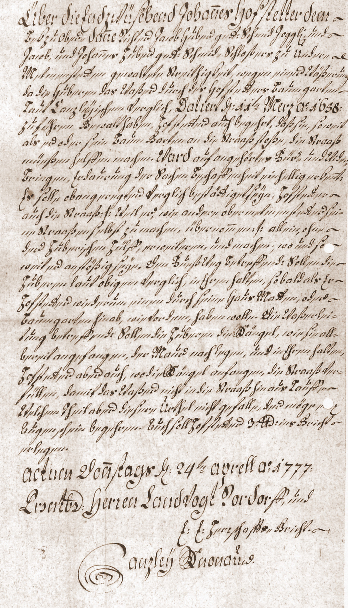 Actum Donnerstags d. 24. April ao. 1777